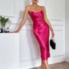 Tieto žiarivo ružové šaty s tenkými ramienkami sú naozaj obľúbené! Vďaka zebrovým pruhom a šnurovaciemu poltuctu sú elegantné a odvážne zároveň. Perfektne sa hodia na letný večer alebo špeciálnu príležitosť, zvýraznia vašu postavu a vy v nich zažiarite. Už neváhajte, tieto šaty sú pre vás ako stvorené!